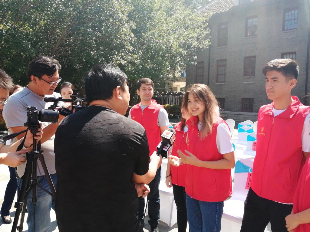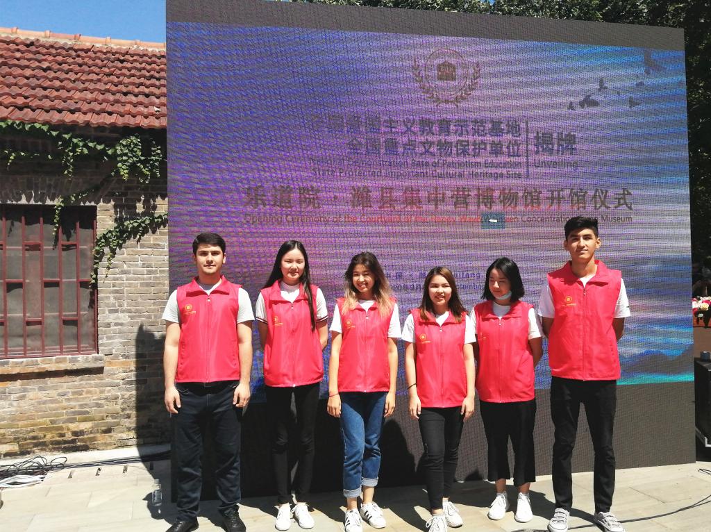 我院哈萨克斯坦、乌兹别克斯坦、塔吉克斯坦、蒙古等国家的留学生在博物馆筹备期间和开馆当日,利用外语和汉语相结合的独特优势,多次开展志愿服务活动,为学院树立了良好的社会形象。外籍师生们所做的志愿服务得到了博物馆领导和社会的高度评价,潍坊电视台、鲁网、潍坊电台等多家新闻媒体在开幕式当天对他们进行了采访。他们站在乐道院遗址前,面对镜头齐声喊出“我爱潍坊,我爱和平”的口号,表达了各国人民对世界和平的共同向往。