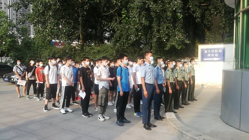 8月5日,学院在奎文、滨海两校区组织征兵体检,66名应征大学生在武装部老师们和工作人员的带领下参加体检。应征学生们佩戴着口罩,井然有序、有条不紊、自觉间隔排队侯检进行内科、外科、耳鼻喉科、眼科、口腔、心理测试等科目检查。