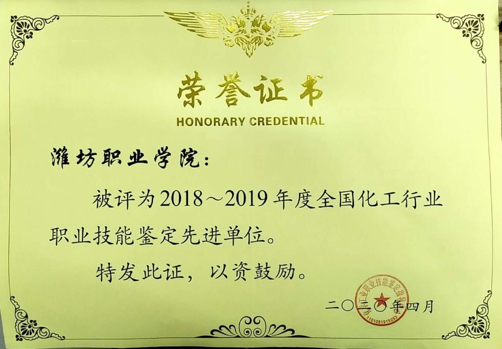近日,国家化学工业职业技能鉴定指导中心发布2018-2019年度鉴定先进单位和先进个人表彰文件,我院化工行业特有工种职业技能鉴定站荣获全国化工行业职业技能鉴定先进单位,邹芳、张新文两位教师被评为全国化工行业职业技能鉴定工作先进个人。