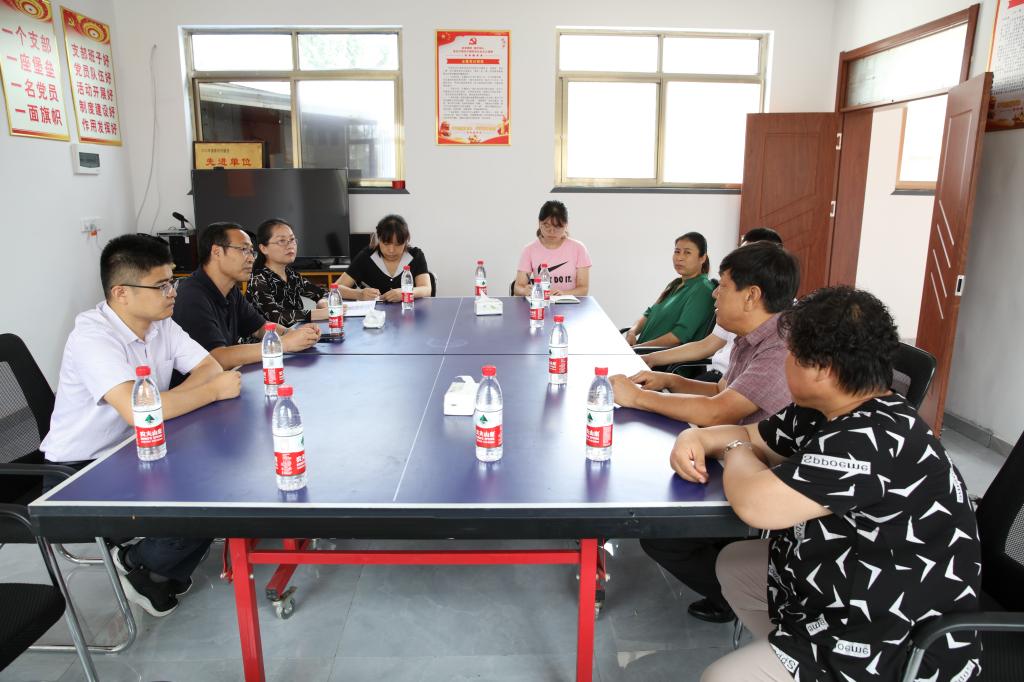 在村委会议室,赵君堂与街道、村“两委”干部进行了座谈交流。驻村“第一书记”王会礼从“党建固基、科技带动、示范引领、产业富民”四个方面对前期工作进行了详细汇报并介绍了下一步的工作思路。赵君堂对第一书记前期工作取得的成绩给予充分肯定,感谢区、街道对第一书记工作的支持,表示学院将继续发挥人才、技术优势,全力做好包村帮扶工作,同时做好先进典型和事迹的宣传,弘扬干事创业精神,激励广大党员干部群众决胜脱贫攻坚。