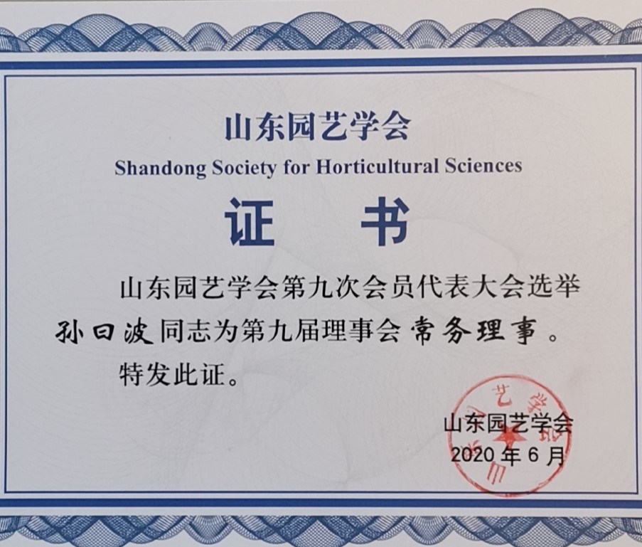近日,山东省园艺学会第九次会员代表大会暨现代园艺产业科技发展学术研讨会在泰安召开,来自全省260多名代表参加了本次大会,我校农林科技学院孙曰波教授被选举为学会第九届理事会常务理事。