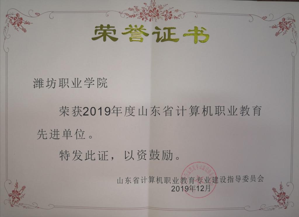 我院被评为2019年度山东省计算机职业教育先进单位