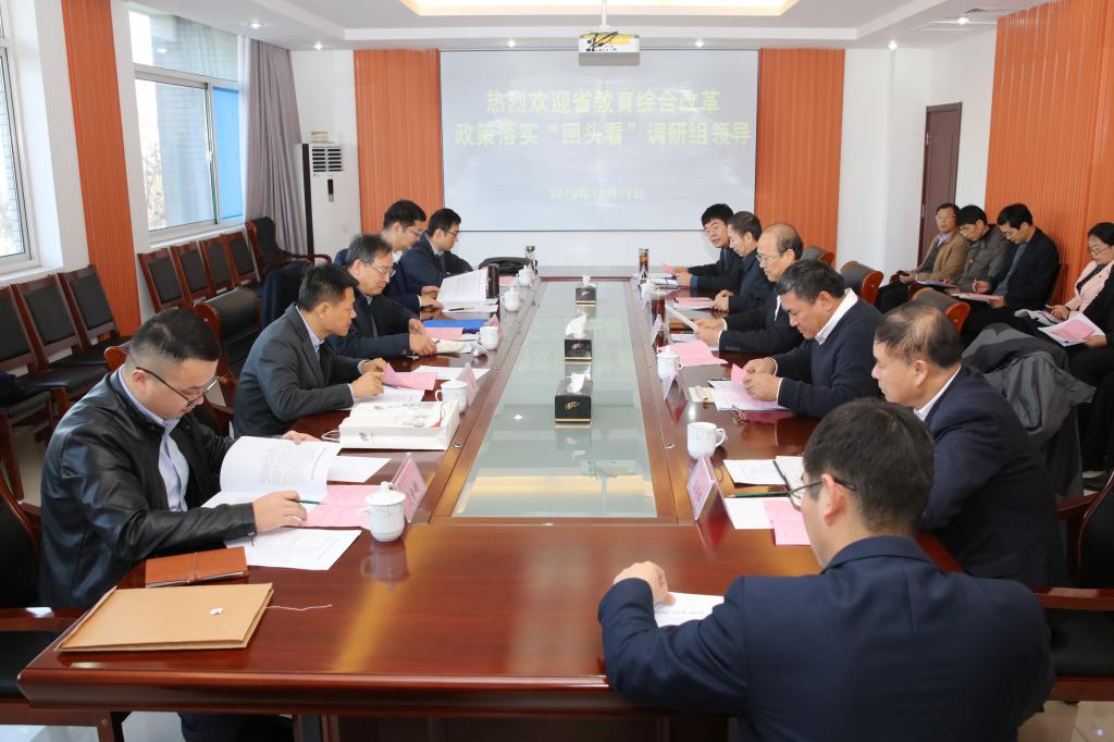 董苏彭介绍了此次调研工作的背景、目的,并提出了调研要求。王家爱代表学院从体制机制、专业建设、师资队伍建设、产教融合、校企合作、继续教育和社会培训、科技研发与社会服务、加强国际交流与合作等方面,系统全面汇报了学院教育综合改革政策落实情况及取得的显著成效,并还就深化综合改革提出了相关意见建议。随后,调研组成员与我院相关部门主要负责同志举行了座谈,就健全深化综合改革政策措施进行了交流,对上级有关政策进行了深入解读,征求了学院对产教融合、校企合作等方面的意见建议,并认真查阅了学院教育综合改革政策措施落实档案材料。(王沐智 周春明供稿)