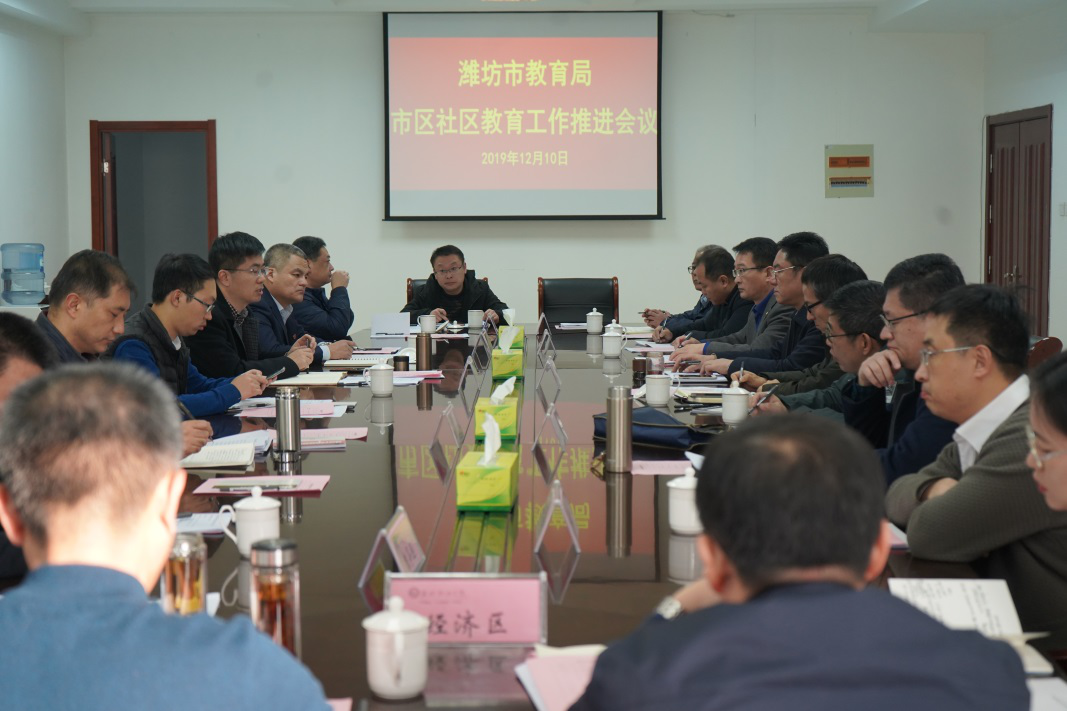 12月11日,由潍坊市教育局主办潍坊职业学院承办的市区社区教育推进会议在我院举行。市教育局民继科的负责同志、六区教体局分管社区工作负责人、科室负责人,相关高职院校的继续教育学院负责人以及我院继续教育学院负责人参加了会议。