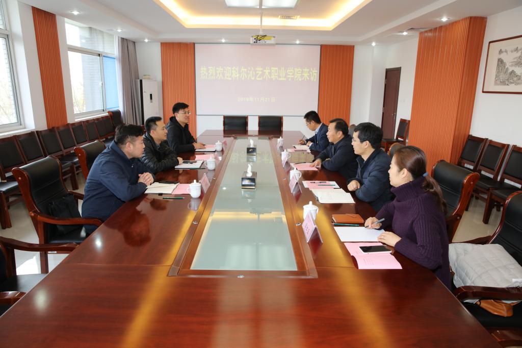 11月21日上午,科尔沁艺术职业学院副院长张龙龙一行3人来我院就产教融合、校企合作以及混合所有制改革等方面情况进行考察交流。学院副院长贺志强在滨海校区清泽楼会议室会见客人,科技处、财务处及现代服务业学院负责同志参加座谈。