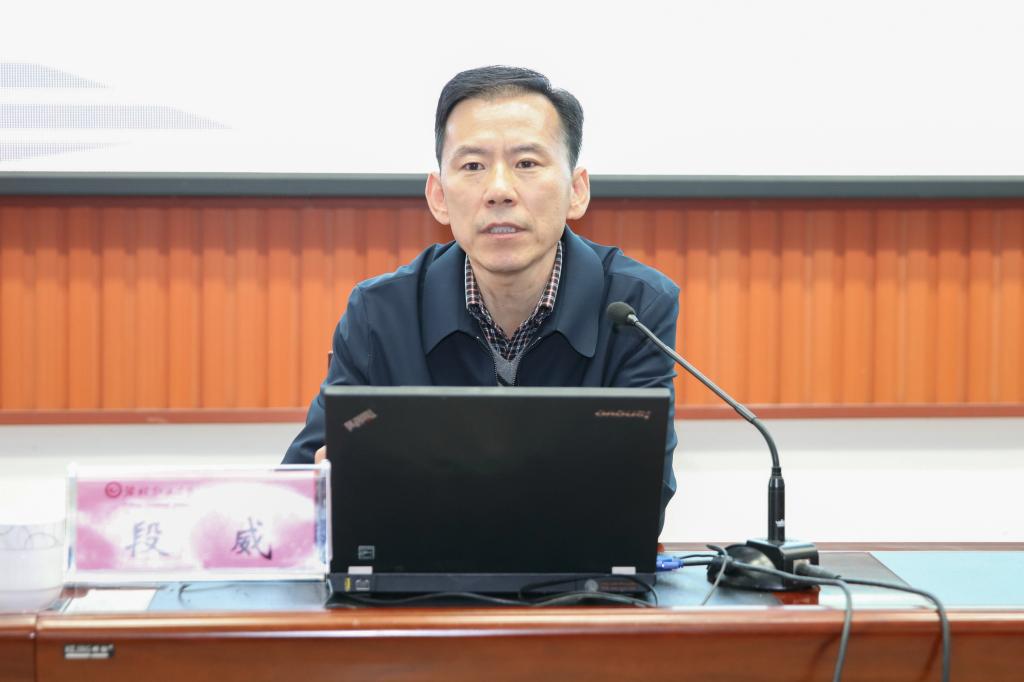 段威从现代学徒制的演变、意义、实施以及特色等方面进行了阐述,重点分析了现代学徒制与传统学徒制的区别,就如何实施现代学徒制改革与如何做出特色谈了自己独到的见解。报告中,段威结合前期教育部试点年检出现的一些问题以及山东省五批现代学徒制试点的运行情况,谈了自己的见解和看法,对我院现代学徒制工作的整改与提升提出了具有指导意义的解决方案,为学院下一步全面推进现代学徒制人才培养模式改革具有重要意义。