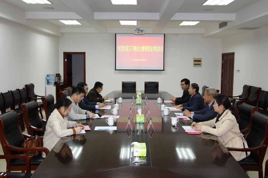 10月25日,三门峡社会管理职业学院党委副书记赵进卿一行4人来我院就混合所有制办学情况考察交流。学院副院长李瑞昌在奎文校区会议室会见客人,科技处、现代服务业学院负责同志参加座谈。