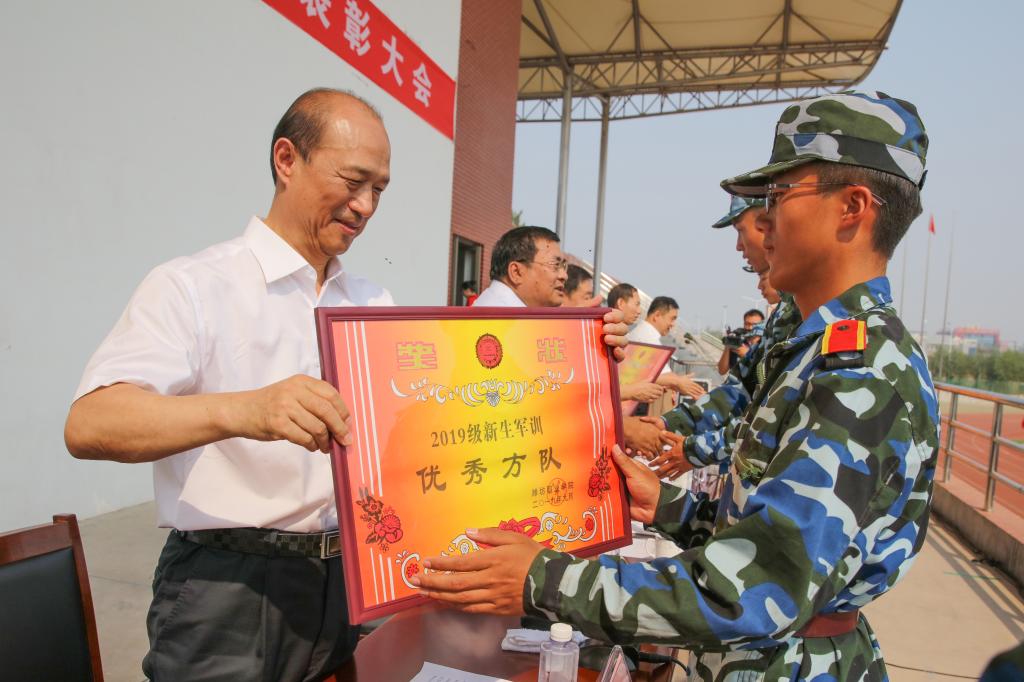 2019级新生军训工作圆满结束,满载军训成果,同学们即将以昂扬的斗志开启大学人生新的奋斗征程!(葛树强供稿)