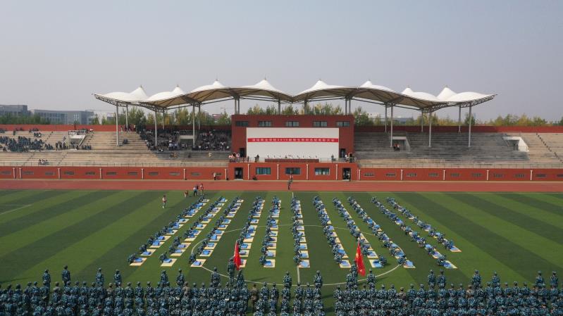 9月29日上午,我院2019级新生军训总结表彰大会分别在奎文、滨海校区体育场举行。学院党委书记马跃启,院长王家爱,驻潍某部指导员李芊呈、刘卓,党委副书记宋桂言,副院长贺志强、李瑞昌,纪委书记郭晓辉,副院长谭明、刘德强出席,并为军训先进集体和先进个人代表颁奖。大会由宋桂言主持。