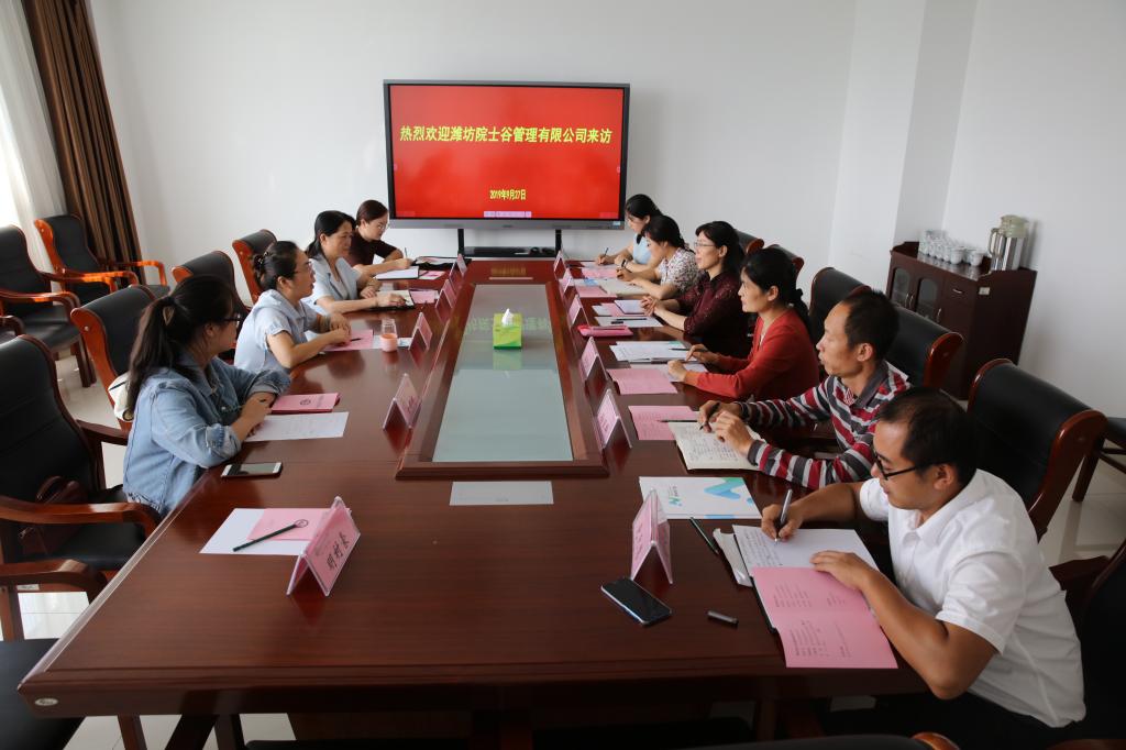 食品药品学院负责人首先对潍坊院士谷管理有限公司各位专家的到来表示热烈欢迎。公司项目运营部负责人对来访目的和公司概况进行了简要的介绍。国际院士谷成立于2017年,依托中国食品谷打造科技成果转移转化平台,为国家农业开放发展综合试验区的建设和发展提供强有力的科技支撑。潍坊院士谷管理有限公司本次来我校交流学习的主要目的是寻求在科研成果向产品转化方面的深度合作。