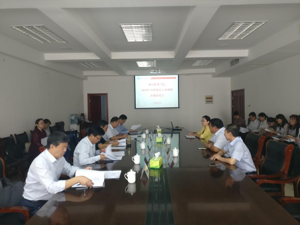 9月21日,根据山东省教育厅《关于公布2019年度山东省职业教育教学改革研究立项项目的通知》要求,我院组织了以王汉忠教授为组长的专家论证组,对2019年立项的11项山东省职业教育教学改革研究项目进行开题论证。院长王家爱、副院长李瑞昌参加了论证会,各项目组成员、教务处相关人员参加了会议。