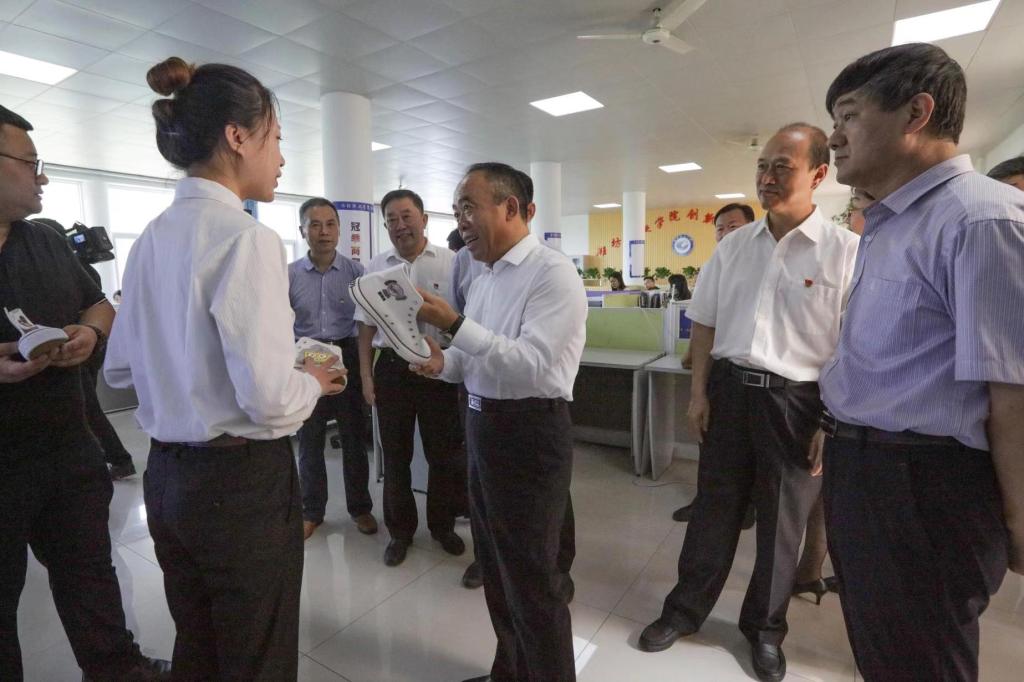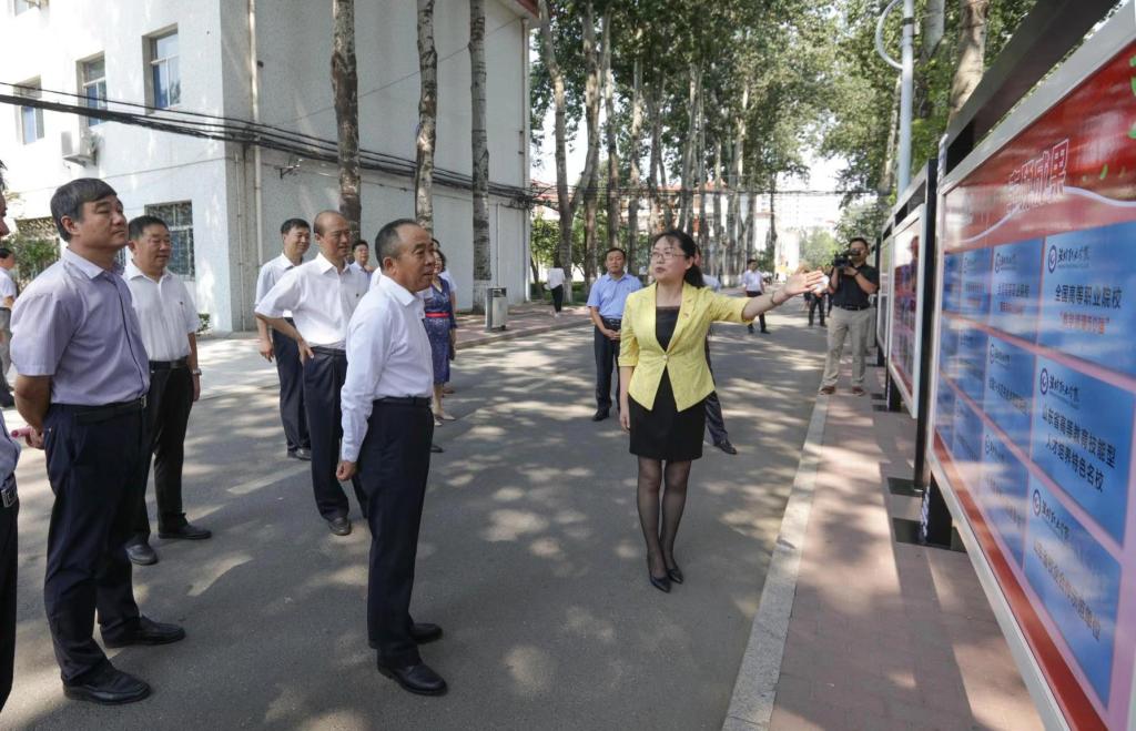 初宝杰一行实地参观了潍坊市大学生“互联网+”创业中心、留学生学习室、学院办学成果展、学生餐厅和潍坊职业农民学院办学成果。马跃启向初宝杰一行简要汇报了学院在党建工作、优质建设、人才培养、校企合作、职业技能大赛、创新创业等方面的情况。