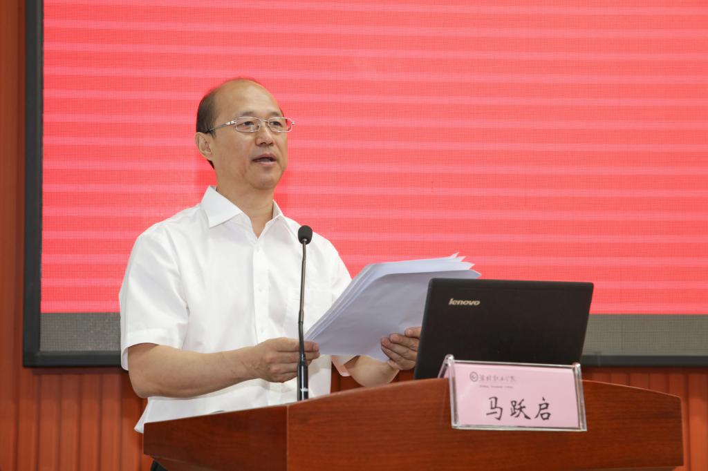 马跃启致辞。他向客人介绍了学院的办学历史、办学优势、师资团队、优质校建设、“双高计划”申报、国际化办学等方面的情况,重点向客人介绍了学院近几年在人才培养、校企协同育人、质量工程项目建设等方面取得的突出成绩和标志性成果。他对学院前期与达内时代科技集团的成功合作表示充分肯定,对教育部“AI+智慧学习”共建人工智能学院启动仪式暨达内产业学院签约仪式在我院举行表示热烈祝贺。他期待校企双方以协议签署为契机,进一步推进校企深度合作,学院各部门要与企业紧密配合,加快推进合作项目尽快落地,争创产教融合、校企深度合作的典范。