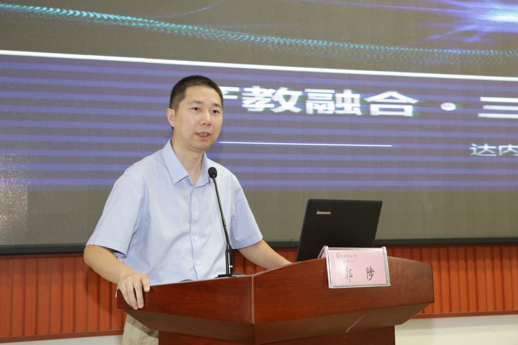 达内时代科技集团副总裁郭陟从集团产值、员工规模、业务覆盖范围、合作院校与企业等方面介绍了公司的基本情况。从慧时代、新人才、全体系、真项目、高创新、强就业、大生态等方面对共建产业学院的产业背景、人才培养模式、人才培养方案、创新创业平台以及就业面向和前景进行了全面系统的讲解。达内时代科技集团AI项目部总经理谢远庆介绍了教育部“AI+智慧学习”共建人工智能学院情况。