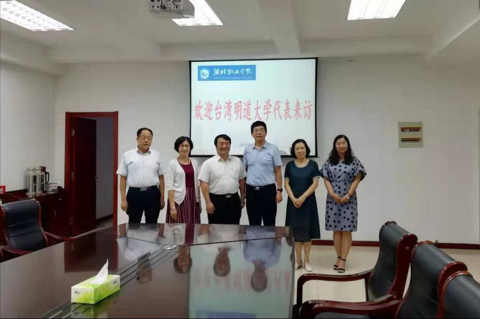 8月2日,海峡两岸教育交流促进协会秘书长兼明道大学校务发展顾问路蕙鸿女士与明道大学国际事务处国际长萧雅柏先生在潍坊市鲁台教育交流中心刘天铎主任陪同下访问我院,刘德强副院长在奎文校区接待了客人,对台湾合作交流办公室相关负责同志参加座谈交流。