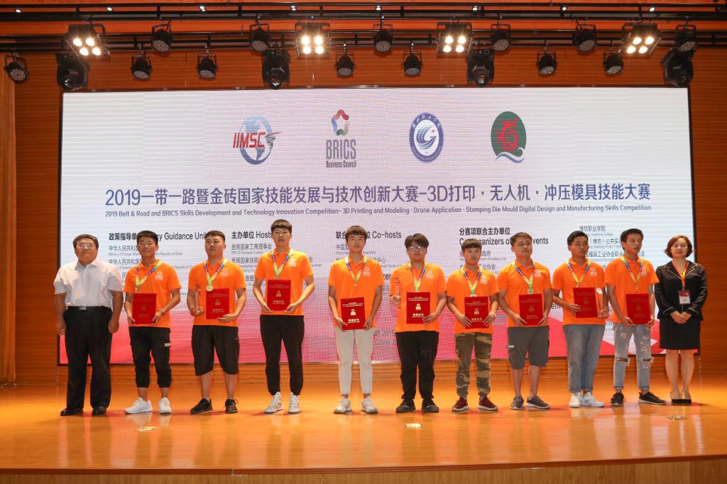 来自全国的108支代表队和6支国际代表队进行了为期两天紧张、激烈的技能比拼,最终决出冲压模具中国赛区决赛3支代表队获一等奖、6支代表队获二等奖、9支代表队获三等奖;3D打印中国赛区决赛3支代表队和潍坊职业学院集训队哈萨克斯坦选手获一等奖、6支代表队和潍坊职业学院集训队印度选手获二等奖、9支代表队和潍坊职业学院集训队巴基斯坦选手获三等奖;无人机(高职组)中国赛区决赛3支代表队和潍坊职业学院集训队孟加拉国选手获一等奖、6支代表队和潍坊职业学院集训队塔吉克斯坦选手获二等奖、9支代表队和潍坊职业学院集训队乌兹别克斯坦选手获三等奖;无人机(中职组)中国赛区决赛2支代表队获一等奖、4支代表队获二等奖、5支代表队获三等奖。此外,本届大赛还评出了大赛优秀组织奖、最佳组织奖、竞赛支持奖、优秀指导教师奖和潍坊职业学院、山东(潍坊)公共实训基地、中国模具工业协会职业教育委员会、北京精雕科技集团有限公司、北京华奥复兴科技有限公司、深圳市创想三维科技有限公司获得突出贡献奖。