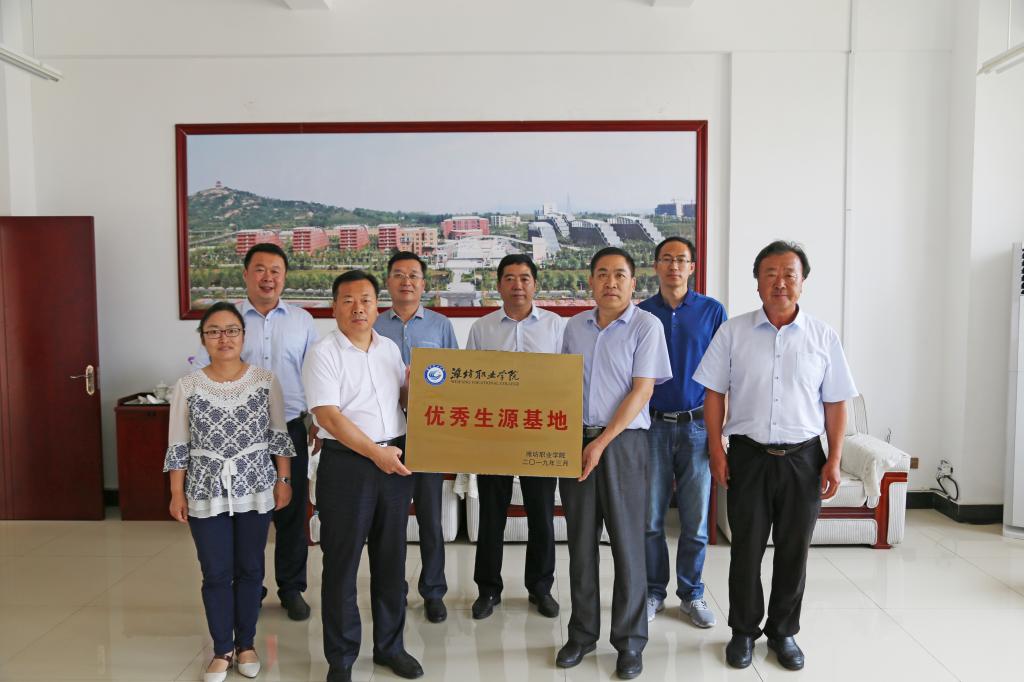 会后,贺志强为临港一中颁发了潍坊职业学院“优秀生源基地”牌匾。(杨艳玲供稿)