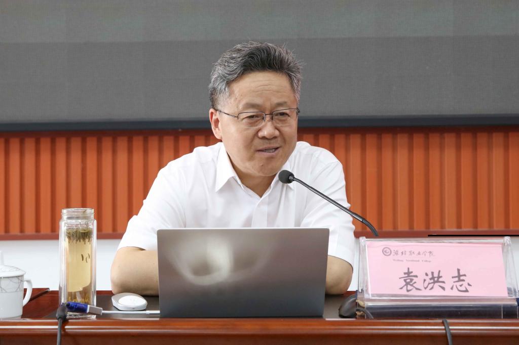 6月21日下午,优质校建设大讲坛第十二讲在滨海校区清泽楼报告厅举行,学院邀请全国职业院校教学工作诊断与改进专家委员会秘书长、原常州工程职业技术学院党委书记袁洪志教授,为大家作“理念先行,完善体系,注重运行,提升质量——诊改制度建设的背景、理念及高职〈复核指引〉解读”报告。学院院长王家爱主持报告会,宋桂言、赵君堂、李瑞昌、郭晓辉、刘德强等学院领导出席报告会。副科级以上干部、骨干教师、诊改推进办公室成员、优质校建设办公室全体成员等200余人参加报告会。