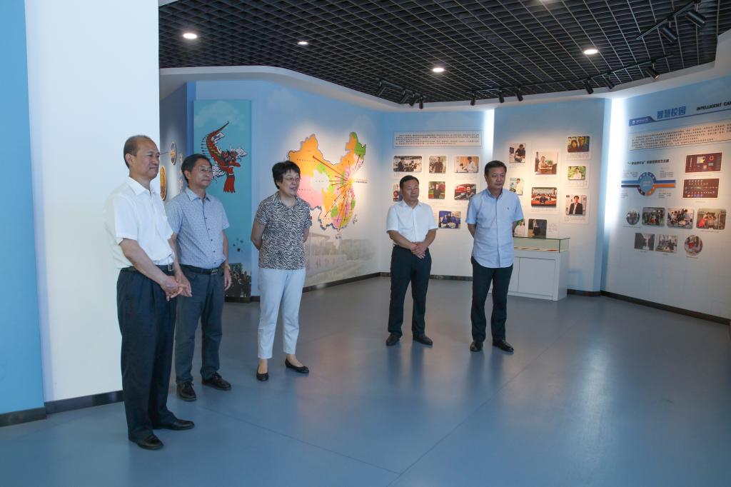 聘任仪式开始前,马跃启陪同三位专家教授参观了学院校史馆及部分名师工作室、实习实训车间。(王锋华供稿)