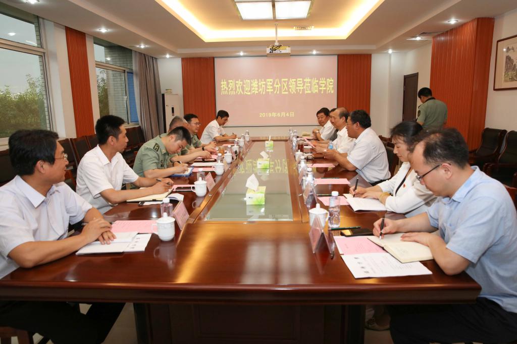 6月4日,潍坊军分区司令员丁峰来我院调研大学生征兵工作。学院党委书记马跃启、院长王家爱、党委副书记宋桂言,滨海区党工委副书记李树森,寒亭区武装部部长刘罡、学院武装部主要负责同志等陪同调研和座谈。