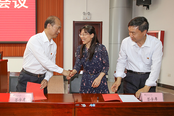 会上,马跃启代表学院党委与相关部门、二级学院党政负责人代表签订了《2019年党风廉政建设责任书》。郭晓辉总结了2018年学院党风廉政建设工作,从五个方面对2019年党风廉政建设工作进行了部署。(刘微微 王洪山供稿)