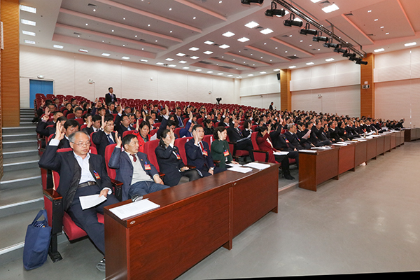 王家爱作题为《紧跟教育现代化步伐落实高质量发展要求努力实现学院事业发展新跨越》的工作报告,总结回顾了过去一年来优质校建设、文明校园建设、教育教学改革、学生工作、科研与社会服务、国际交流与合作、综合管理服务、党建和思想政治工作等方面的工作成绩,分析了当前经济社会发展和高等职业教育面临的形势,明确提出2019年学院工作总的目标与任务是:以新理念引领新发展,突出问题导向、目标导向和成果导向,补短板、强弱项,出成果、上层级,争先进、创一流,全力建设山东省和全国优质高职院校,建设山东省高水平高职院校和若干高水平专业群,争创全国高水平高职院校和骨干专业群,争创省级文明校园,积极申办高职本科专业,努力推动学院事业发展实现新跨越。并就加强理论学习更新理念、争创全国优质校和“双高计划”、深化教育教学改革、深化产教融合校企合作、加强学生管理与服务、做好招生与就业、提升科技研发和社会培训、深化国际交流与合作、加快文明校园创建、加强综合保障和安全稳定等方面提出了具体的工作措施。
