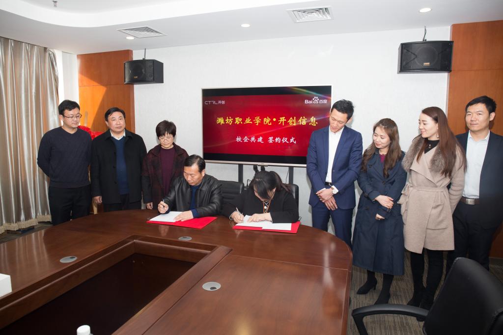 3月22日,我院与山东开创信息有限公司校企共建专业协议签订仪式暨经营管理学院校外实训基地、“双师型”教师培养培训基地授牌仪式在山东开创集团股份有限公司济南总部举行。学院副院长贺志强、山东开创集团股份有限公司总裁刘胜楠、开创集团子公司山东开创信息有限公司董事长房建出席仪式,经营管理学院负责同志及相关老师参加了活动。
