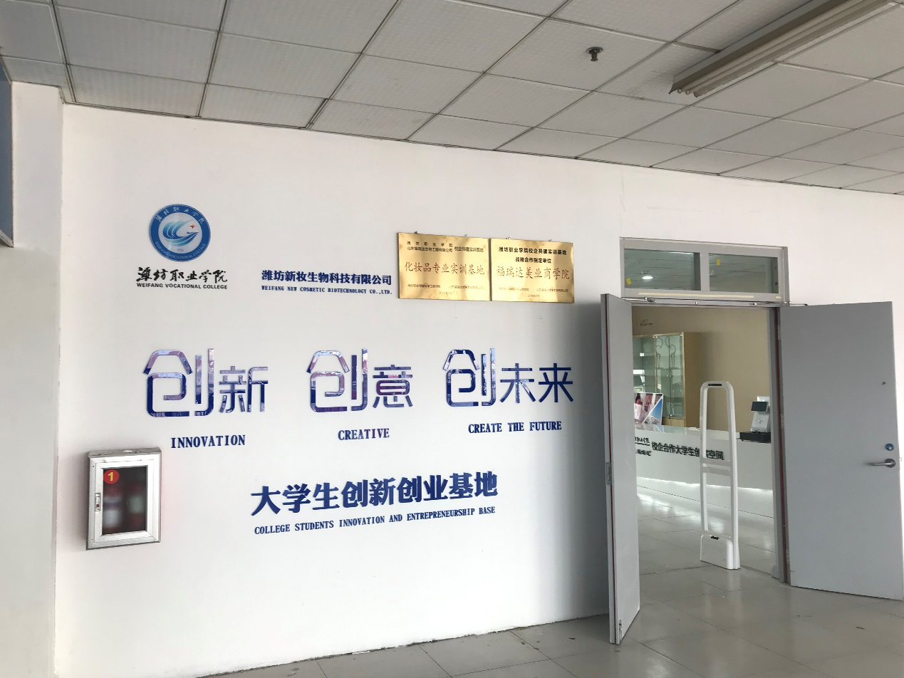 3月8日,我院与山东福瑞达生物工程有限公司共建的大学生创新创业基地在餐厅三楼开始运营。本基地由潍坊职业学院、山东福瑞达生物工程有限公司和潍坊新妆生物科技有限公司三方投资共建,潍坊新妆生物科技有限公司由我院学生创建,负责基地的运营和管理。