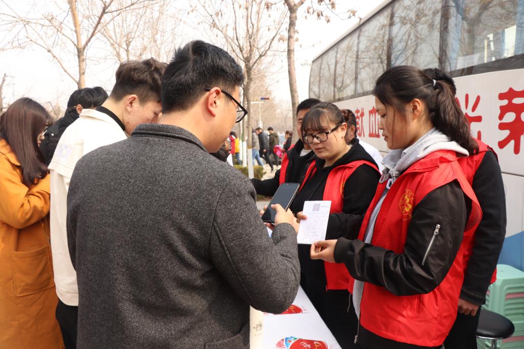 活动现场,气氛高涨,志愿者们给前来咨询的同学讲解无偿献血的知识,献血者进行填表、化验、抽血……所有的流程都井然有序地进行,青年学生是志愿精神的前行者,引领者,一股股青春热血,一颗颗爱心满怀,他们用实际行动为社会接力温情、延续感动。