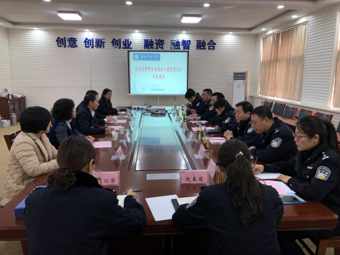 2月28日下午,东营市公安局出入境管理支队政委张永廉在潍坊市公安局出入境管理支队政委段华陪同下,到我院就留学生管理和“留学生之家”四级联动运行模式进行学习交流。学院副院长李瑞昌、党委委员办公室主任谭明在奎文校区接待了客人,国际交流与合作处负责同志及相关教师参加了座谈交流。