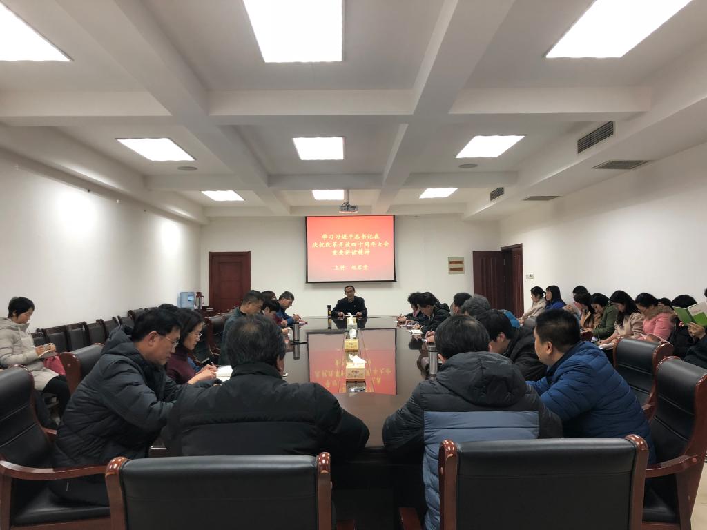 赵君堂带领大家认真学习领会习近平总书记在庆祝改革开放四十周年大会上的重要讲话精神,回顾改革开放四十年的光辉历程。赵君堂结合自身经历以及学院从建校初期到现今在开放办学中取得的成绩,真实生动地描述了改革开放对国家和人民带来翻天覆地的变化。