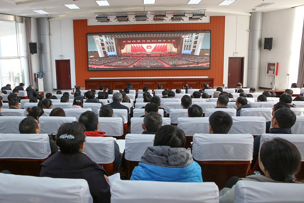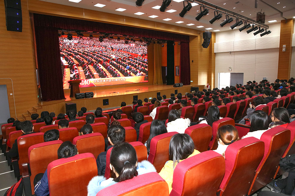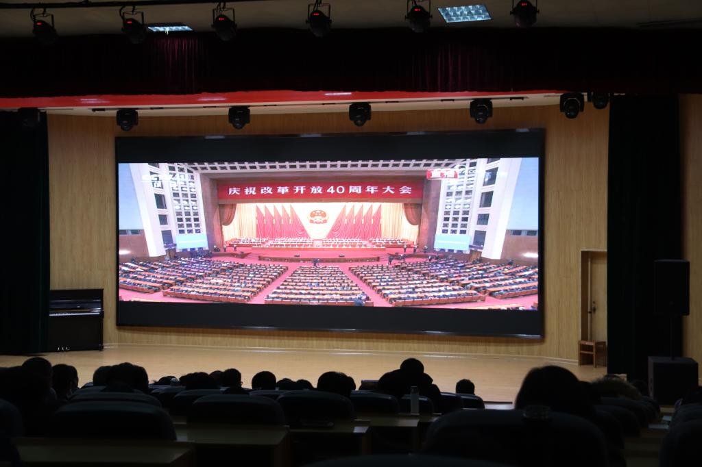 12月18日上午,庆祝改革开放40周年大会在人民大会堂隆重举行。中共中央总书记、国家主席、中央军委主席习近平出席大会并发表重要讲话。学院党委高度重视,周密部署,在滨海校区明德讲堂、图书馆报告厅、奎文校区报告厅组织收看大会直播盛况。学院党委书记张洪全,院长王家爱,党委副书记宋桂言,副院长赵君堂、贺志强、李瑞昌,纪委书记郭晓辉,党委委员、办公室主任谭明,学院中层干部及师生代表1000余人集中收看大会,共同分享改革开放40周年辉煌成果。