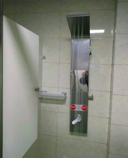 学院一直高度重视学生生活条件的改善,在去年奎文校区学生公寓洗浴建设取得成功的基础上,总结经验,充分调研,制订了详细工作方案。利用暑期时间,保质量、促进度,完成了滨海校区4栋学生公寓楼的洗浴设备安装工作。整个系统采用空气能加热与原学院太阳能系统相结合,并实现智能化监控,更节能环保,系统能效提升40%, 并实现24小时自动稳定运行和数据远传。淋浴室覆盖4栋学生公寓楼,公寓楼每层南北区各有一个淋浴室,每个淋浴室10个浴位,共36个淋浴室,360个淋浴位,满足了学生洗浴需求,让学生不出宿舍楼就可洗上热水澡。淋浴室、淋浴间设计人性化,注重学生隐私,每个浴位采用隔档方式,加装浴门;浴位内设有储物柜,便于学生存放物品;每个浴位设有脚蹬、洗浴用品放置架;在每个淋浴室外部等待区,都安放了一个四人座椅,处处体现人性化服务,极大地方便了学生。