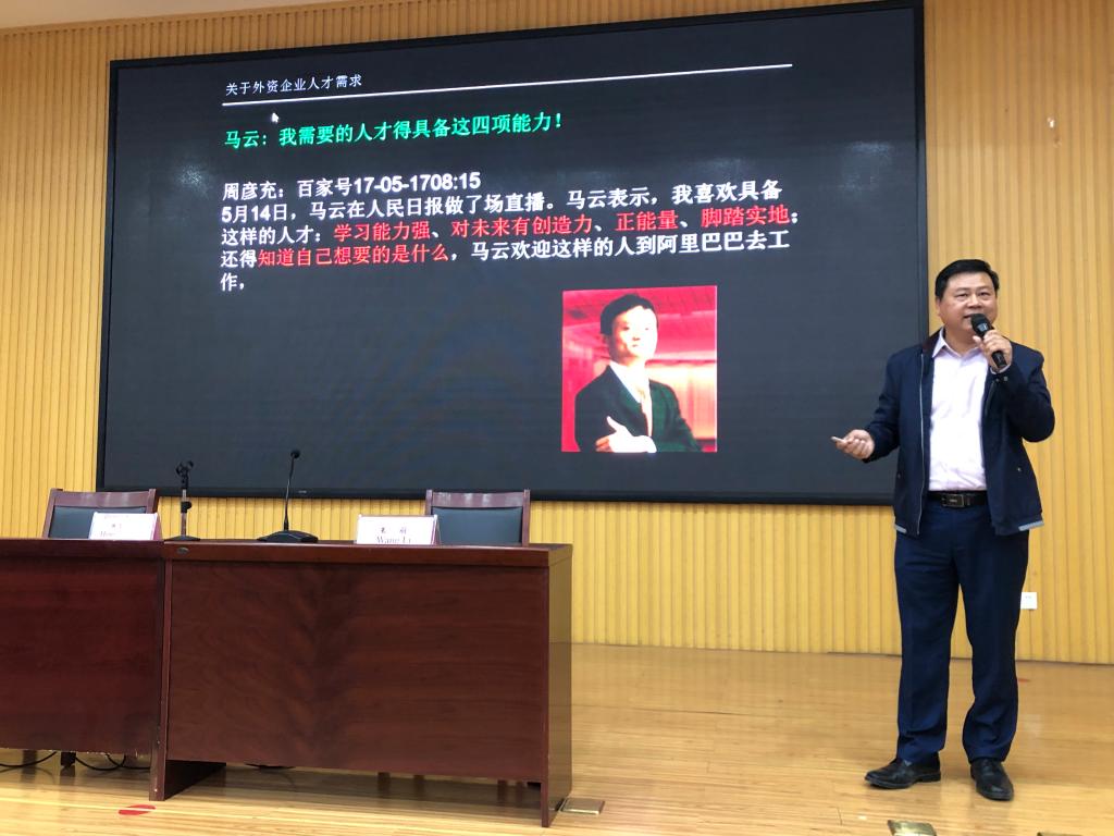 作为新加坡在华优秀企业家,洪荣利先生结合自己在华创业经历和企业发展及人才需求,提出了“什么是企业、企业的挑战、企业家的想法、涉外企业对员工的素质能力要求”等一系列问题,并结合目前国际经济形势,分析了我国涉外企业面临的挑战和机遇,对涉外类专业同学们目前的学习,未来择业、创业等出了建议和指导,与师生分享了自己的成功经验,提出要勤奋努力,懂得感恩,回报社会,道德至上。希望同学们珍惜学习时间,积累知识,提高能力。他用一颗小麦由播种到成熟的过程比喻人的成长成功,播种一棵下良好的种子,才能收获未来的圆满与成功。