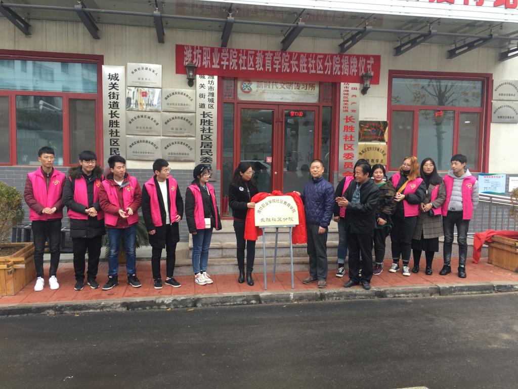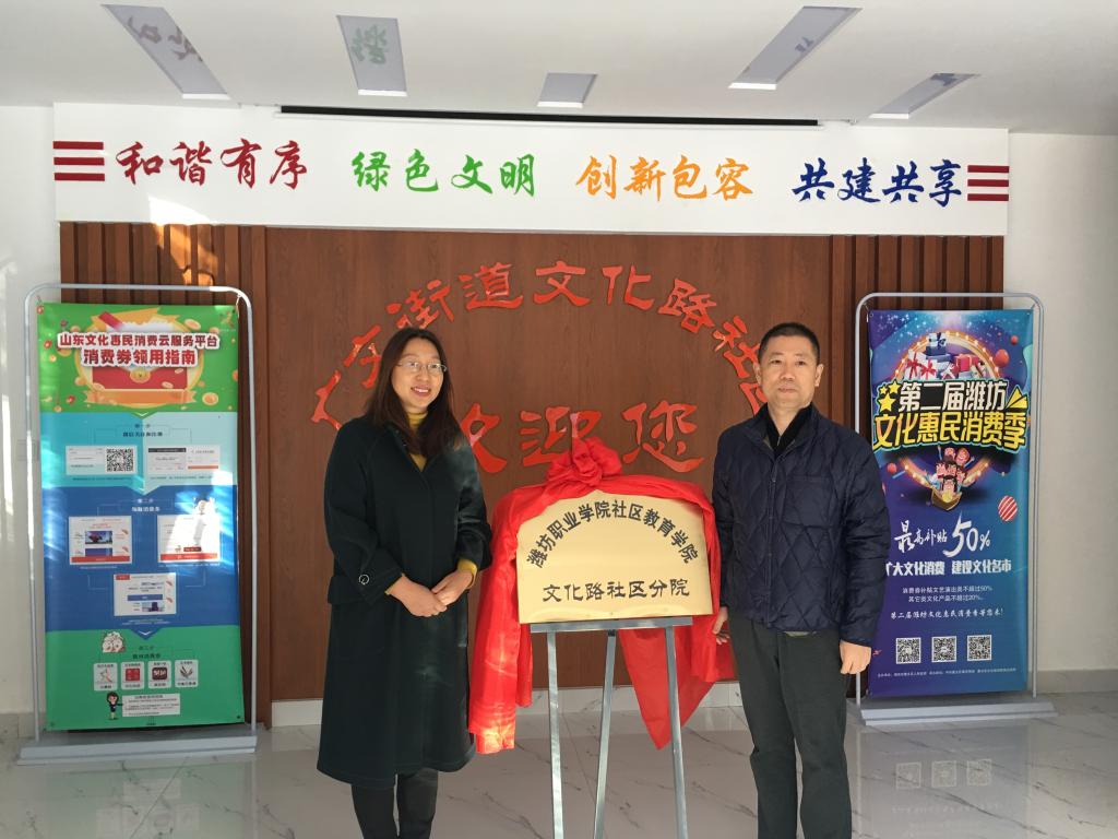 近日,潍坊职业学院社区学院相关负责同志分别到广文街道文化路社区、城关街道长胜社区组织社区学院分院揭牌仪式。文化路、长胜社区负责同志,社区学院负责同志和相关人员出席了揭牌仪式。
