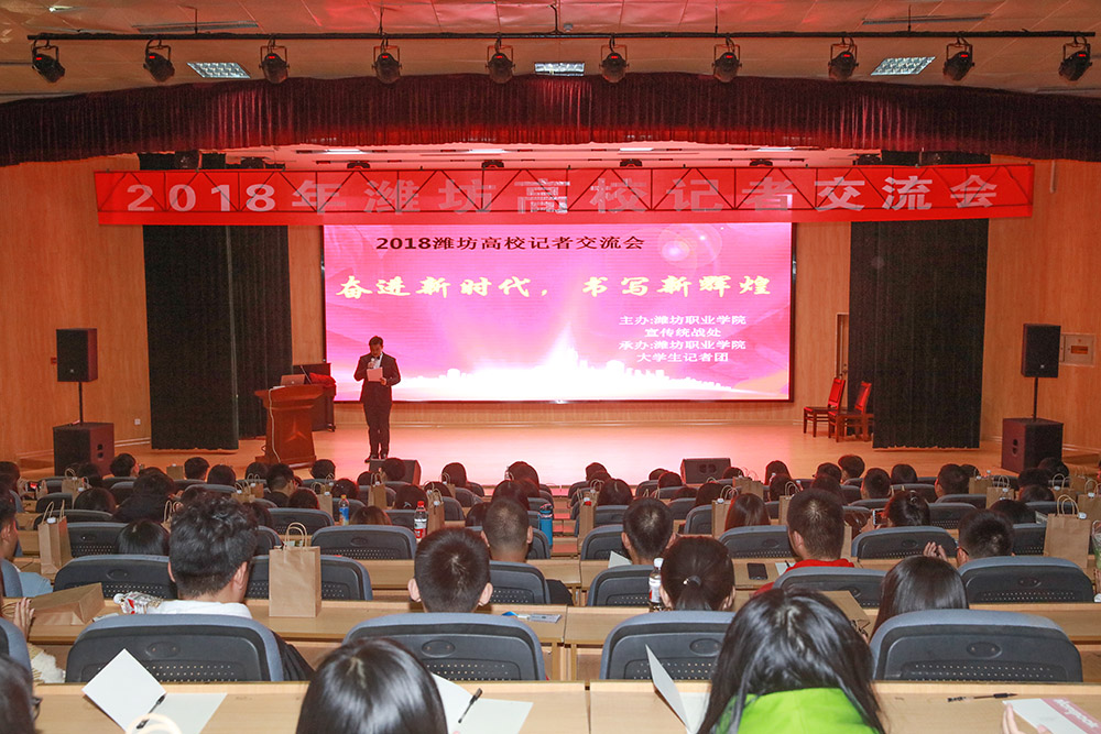 11月10日下午,驻潍高校大学生记者交流会在我院奎文校区报告厅举行。学院宣传统战处、团委学生工作处相关负责同志,来自潍坊医学院、潍坊学院、山东交通职业学、山东科技职业学院、山东信息技术职业学院、山东经贸职业学院、山东畜牧兽医职业学院等院校大学生记者,以及我院大学生记者团代表200余人参加会议。