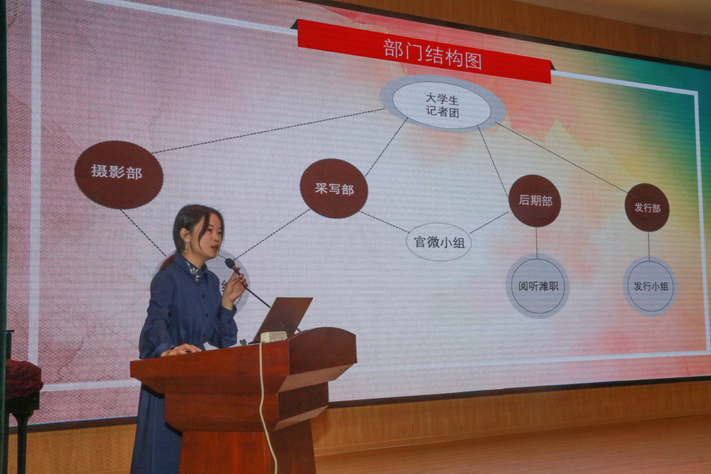 会议期间,各高校记者团团长紧紧围绕“奋进新时代,书写新辉煌”会议主题,分别采用PPT展示的方式,配合生动形象的解说向与会代表展示了各高校记者团一年来的工作成绩,精要阐述了未来发展方向及工作规划,并就校园新闻、人物采访写作和新闻摄影等问题进行了切磋,纷纷表示担当好校园记者角色,为高校宣传工作尽一份力量。随后,观看了由奎文校区同学演出的《boom baby》《dance of soul》《中国制造》《风酥雨忆》等精彩节目,赢得了与会师生热烈掌声,将交流会推向了高潮。