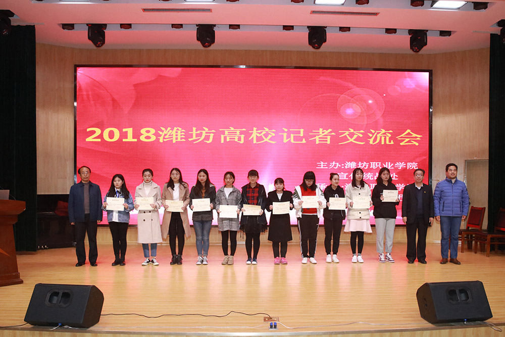 会议结束,我院教师为2018年“喜迎国庆,笔抒情思”征文、摄影比赛获奖作者进行颁奖,并与驻潍高校大学生记者合影留念。与会大学生记者参观了初冬美丽的奎文校园,切身感受到我院深厚浓郁的校园文化气息。(张景伟供稿)
