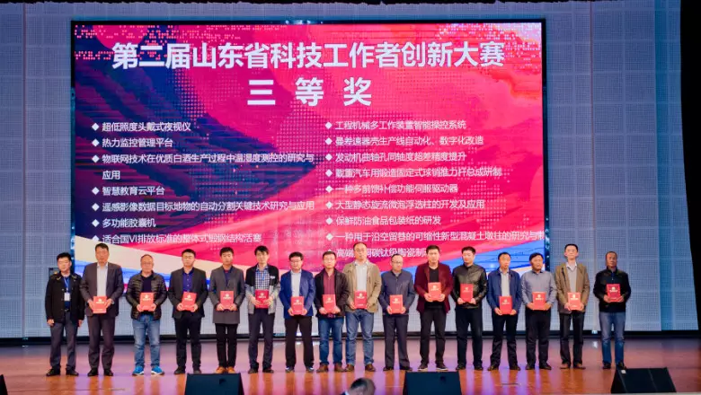 第二届山东省科技工作者创新大赛由山东省科学技术协会举办,是省科协开展的“助力创新驱动发展工程”的重点项目,旨在激发广大科技工作者创新创业热情,促进科技成果转化,服务于我省新旧动能转换,涉及我省新旧动能转换“十强产业”,从新一代信息技术、高端装备、新能源新材料、高端化工、医疗健康、现代海洋、现代高效农业、交叉领域共8大命题领域。大赛自7月份启动,汇集了省内14地市,300余家高校、企业、科研院所、孵化器及科技组织推荐的项目高达367项,其中潍柴动力、国家电网、中国重汽集团、山推、济南二机床、福田雷沃、古贝春、景芝酒业、渤海活塞、西王特刚、山东农业大学、鲁东大学、山东交通大学、山东机械研究所等大型企事业单位参与。经过初审、网络投票、复赛专家会评,最终遴选出125个优质项目参加现场决赛。11月2日决赛现场经过省内外15位评审专家学者对进入决赛项目的申报资料核查、现场问询、答辩等环节,最终评选出一等奖15项、二等奖26项、三等奖31项。山东省科学技术协会党组成员、副主席纪洪波(正厅级)、枣庄市委副书记梁宪廷等领导出席大赛颁奖典礼并致辞。