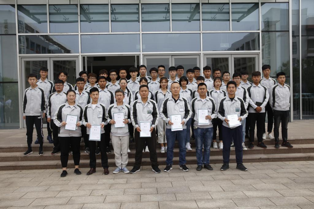 仪式结束后,一起参观了学院办学成果展室,师徒合影留念。(葛树强供稿)