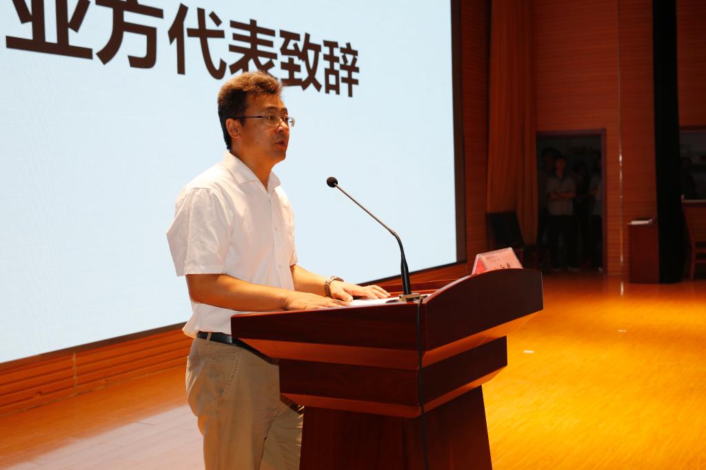 李瑞昌代表全院师生对歌尔股份有限公司捐赠实训设备表示感谢,向拜师学艺的学徒和获得奖学金的同学表示祝贺。他说实施现代学徒制是教育部深化产教融合、校企合作的一种新的人才培养模式,歌尔公司作为潍坊市机电设备职教集团成员单位,多年来一直支持学院发展,近年与数控技术专业合作开展现代学徒制培养,在校企联合招生、一体化育人、师傅团队构建、学徒权益保障等方面取得了显著成效,为企业快速发展增添了活力,学徒制培养成为我省现代学徒制试点工作的典范。他提出了几点希望:一是师傅用心带徒,做学生发展的思想引路人,做行为上的示范人,做技艺上的传承人。二是学徒们要虚心学习,努力做到脑勤、口勤、腿勤、手勤“四勤”,多动笔多记录多实践。三是师徒团结、共同发展,将歌尔文化、学校文化、工匠精神融入工作实践中,争做德技并修的新时代大学生。