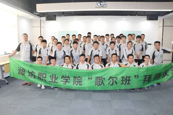 7月13日下午,学院与歌尔股份有限公司现代学徒制“歌尔班”拜师仪式隆重举行。本次拜师仪式是现代学徒制试点的重要环节,通过拜师仪式明确师徒关系、双方职责,为今后开展人才精准培养打好基础。学院副院长李瑞昌、歌尔股份有限公司人力资源部校企合作总监冯云鹏、机电工程学现代学徒制试点项目相关负责人、歌尔股份有限公司PMF事业群人力资源部总监李强以及“歌尔班”全体师徒参加了仪式。