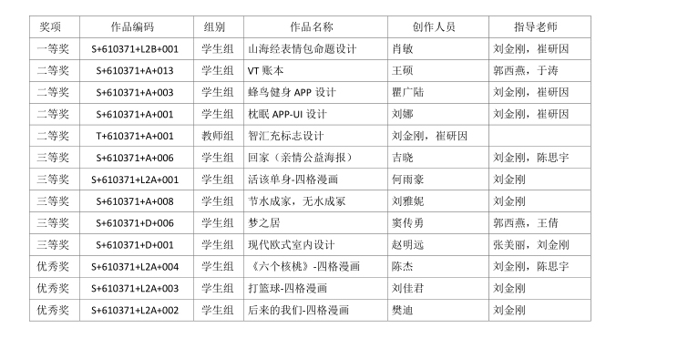 文化创意学院积极组织师生参赛,二级学院主要负责同志牵头成立大赛辅导团队,选拔优秀学生创作参赛作品。今后,文化创意学院将继续以参赛锻炼学生创意创新和设计表现能力,通过比赛促进师生专业水平增长,提升人才培养质量。(刘金刚供稿)