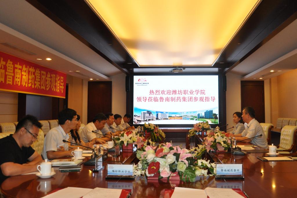 张洪全介绍了学院的办学历史、办学规模、办学理念以及学生就业等方面的情况,重点介绍了学院围绕产业办专业、围绕企业需求育人才,不断创新产教融合育人模式的经验和认识,对于进一步强化校企深度合作和推进实施校企联合育人等方面提出了具体意见和建议。李宝杰介绍了鲁南制药集团股份有限公司的发展历史、主要业务、企业文化、经营理念、核心竞争力、用人需求及未来公司的发展规划,表达了与我院深入开展校企合作的愿景。