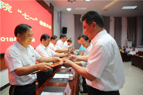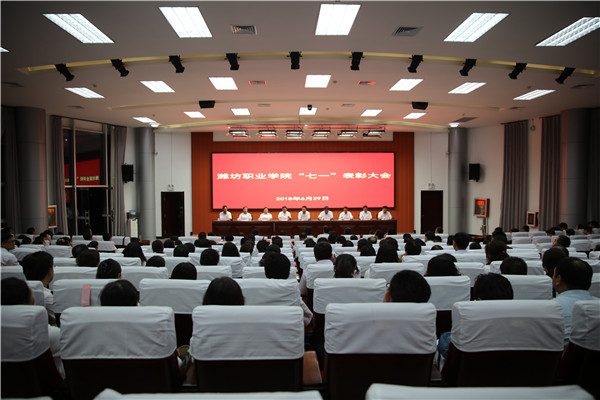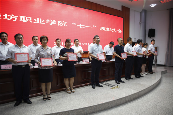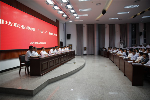 党委副书记宋桂言宣读了学院党委《关于表彰潍坊职业学院2018年先进基层党支部、优秀共产党员和优秀党务工作者的决定》。10个先进党支部、62名优秀共产党员、16名优秀党务工作者受到学院党委表彰。