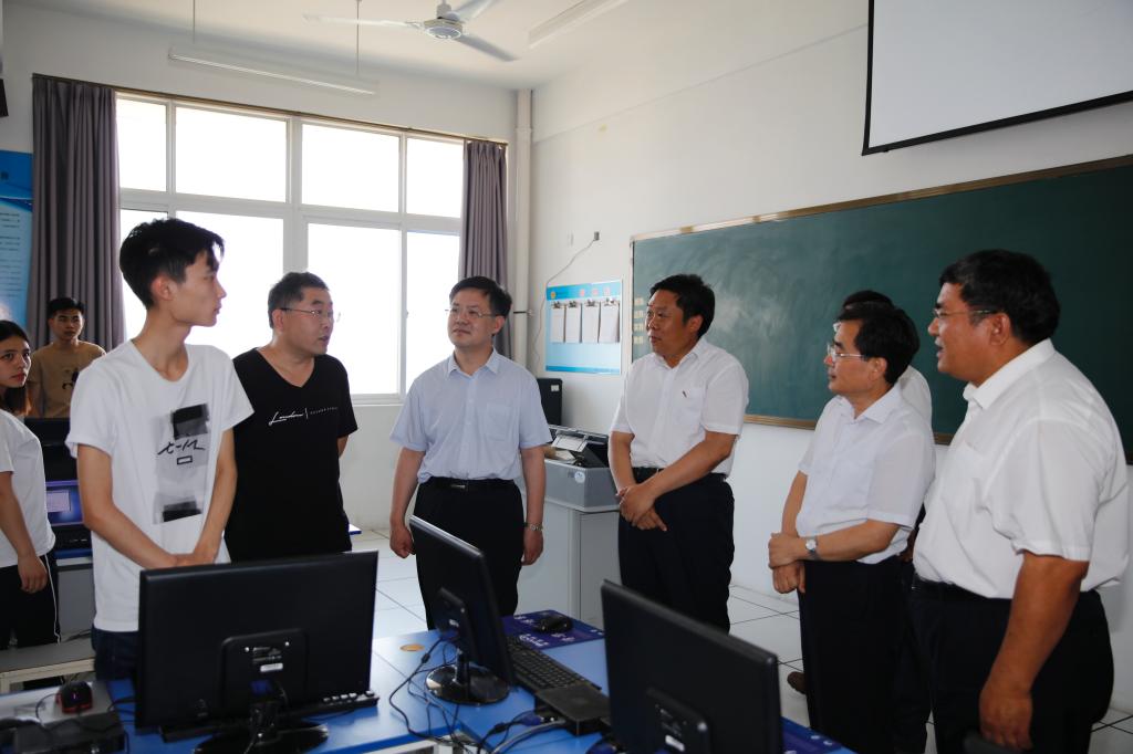 6月20日下午,省委教育工委委员、省教育厅副厅长白皓、职教处处长梁斌言一行来我院调研工作,潍坊市教育局局长徐友礼,高等教育办公室副主任李广敬等同志陪同,学院党委书记张洪全,院长王家爱,副院长李瑞昌,党委委员、办公室主任谭明参加调研,办公室、教务处、信息工程学院等相关部门负责人参加了调研。