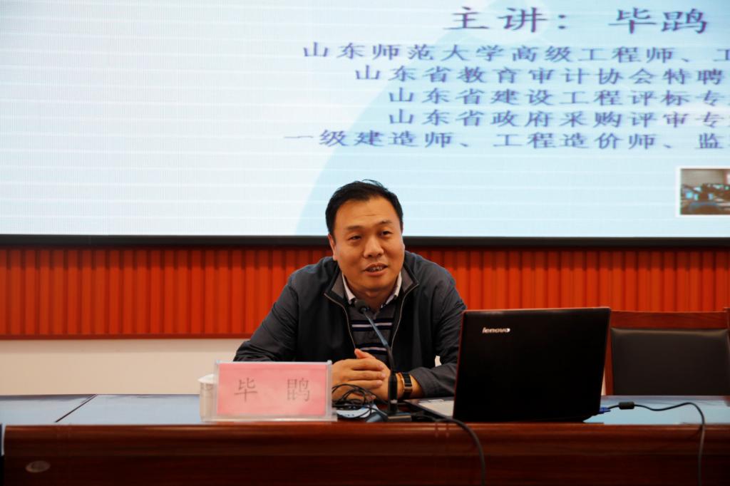 为进一步推动我院内部审计工作健康发展,5月22日,学院在滨海校区清泽楼报告厅举办审计专题讲座,山东省教育审计协会第一批智库专家、山东师范大学审计处副处长毕鹍作了题为“加强完善内审工作,促进学校健康发展”的主题讲座。学院副院长赵君堂、贺志强、李瑞昌,纪委书记郭晓辉出席,学院中层正职干部(含主持工作副职)及各部门、二级学院负责经费和资产管理的相关人员参加讲座。郭晓辉主持讲座。