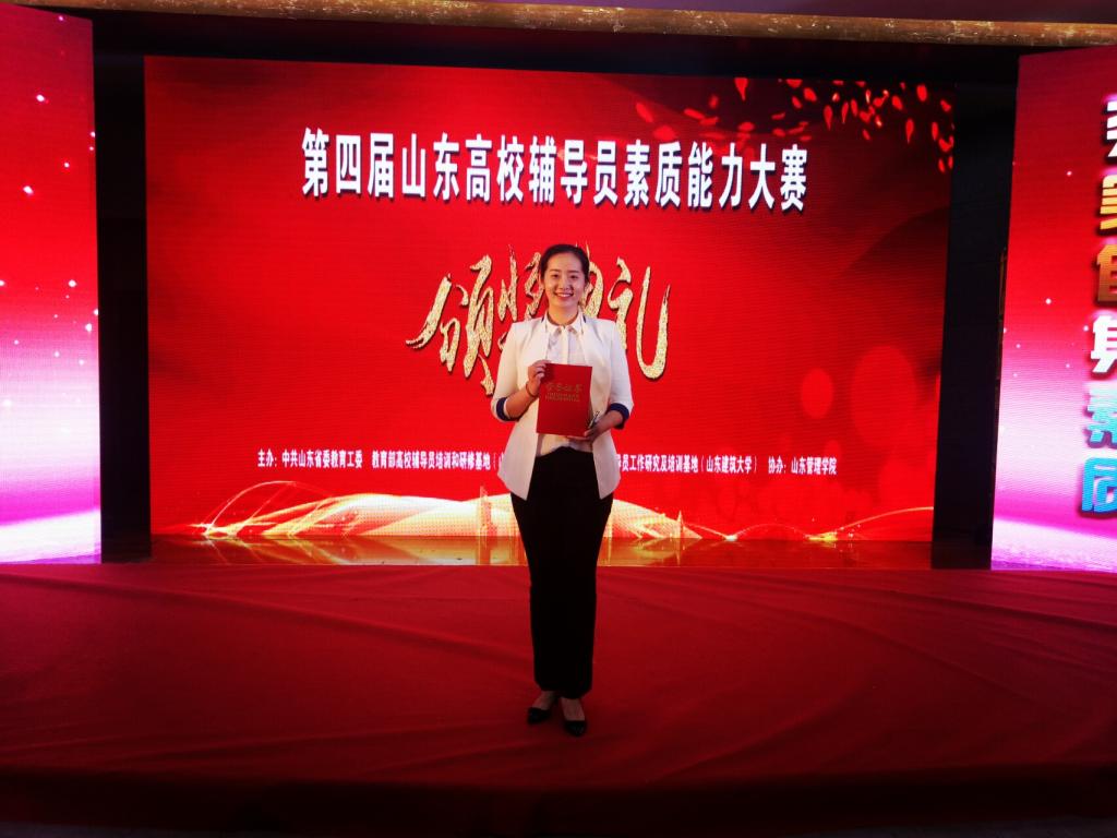 5月11日至14日,山东省第四届高校辅导员素质能力大赛在山东管理学院举行。共有来自全省各高校的131名辅导员参与角逐,最终产生特等奖3名、一等奖10名、二等奖20名、三等奖30名,优秀奖68名。文化创意学院辅导员张晓敏老师代表学院参加决赛并获三等奖。
