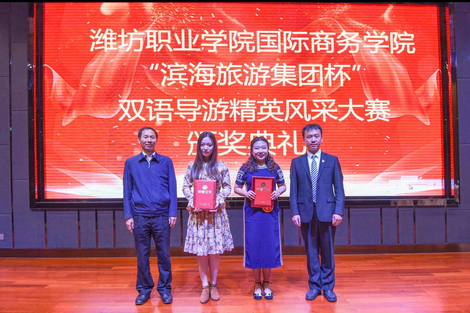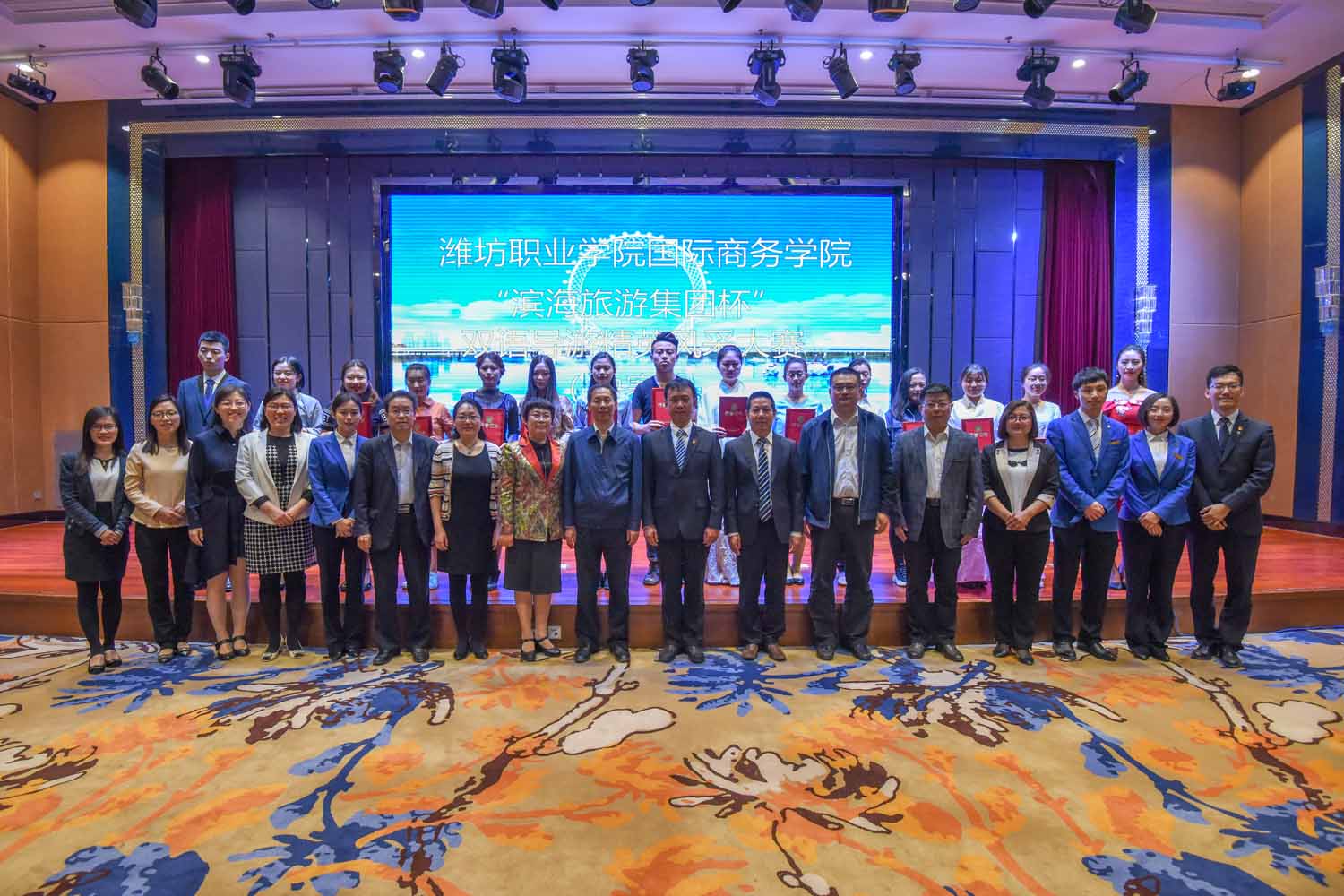 5月9日,由国际商务学院主办、滨海旅游集团承办的“滨海旅游集团杯”双语导游精英风采大赛决赛在滨海城市艺术中心举行。学院副院长李瑞昌出席颁奖暨聘任仪式,潍坊滨海旅游集团党委副书记王宁,集团人力资源部总监张永伟,教务处、国际商务学院主要负责同志出席仪式。经过激烈角逐,共评出一等奖2名、二等奖4名、三等奖7名,充分展示了当代大学生的双语导游竞技风采。