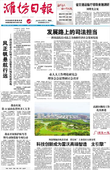 ●潍坊日报(2016年10月27日头版头条)